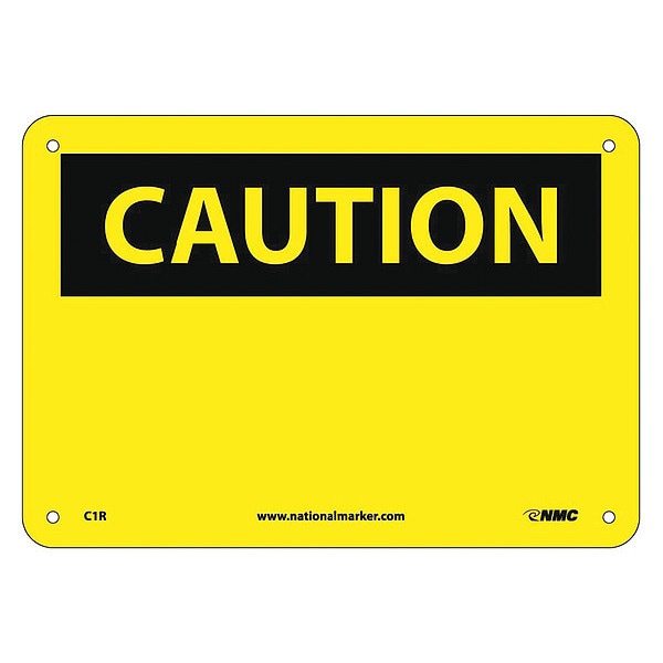 Caution Sign, 10" W, 7" H, English, Plastic, Yellow, Sign Shape: Rectangle