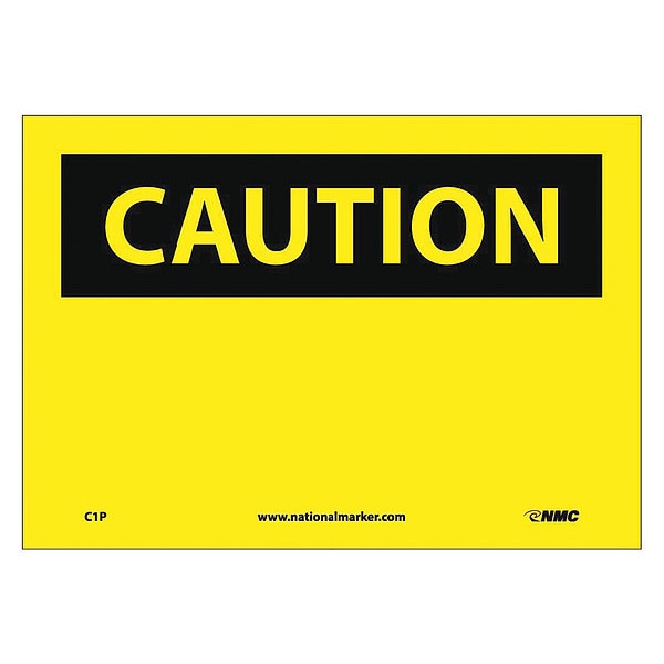 Caution Sign, 10" W, 7" H, English, Vinyl, Yellow, Legend Style: Blank