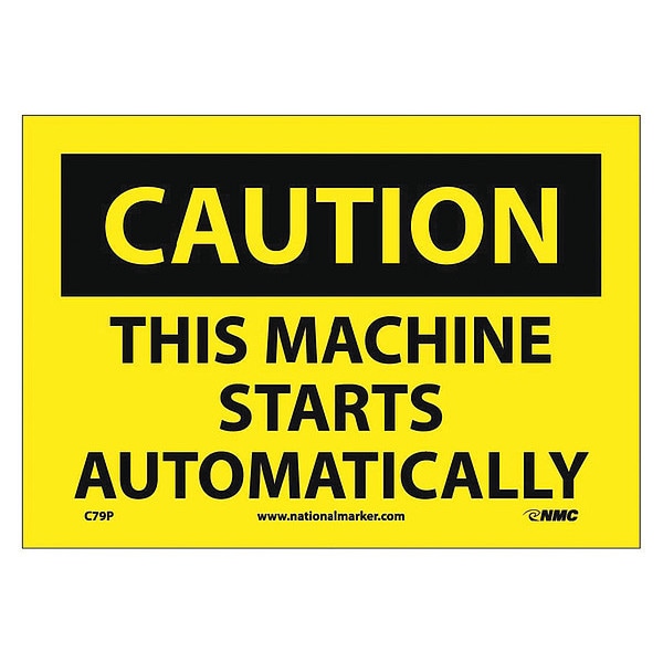 Caution This Machine Starts Automaticall, 7 in Height, 10 in Width, Pressure Sensitive Vinyl