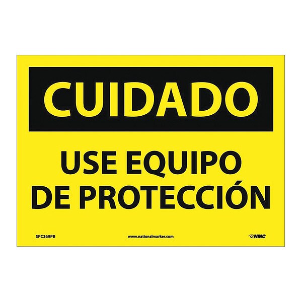 Caution Use Protective Equipment Sign, Sp, 10 in Height, 14 in Width, Pressure Sensitive Vinyl (Discontinued)