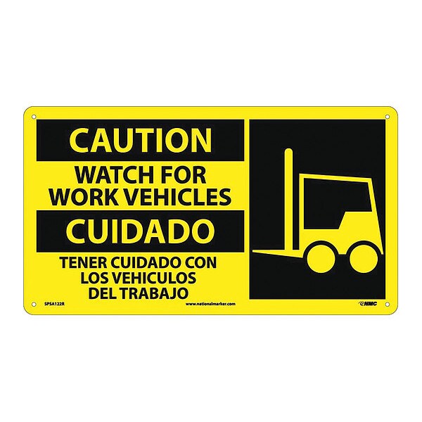 Caution Watch Out For Work Vehicles Sign - Bilingual, SPSA122R (Discontinued)