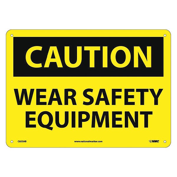 Caution Wear Safety Equipment Sign, 10 in Height, 14 in Width, Aluminum (Discontinued)