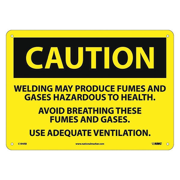 Caution Welding Fumes Hazardous Sign, 10 in Height, 14 in Width, Plastic, Rectangle, English