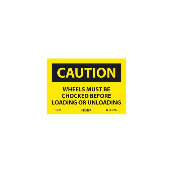 Caution Wheels Must Be Chocked Before 7x10 Pressure Sensitive Vinyl