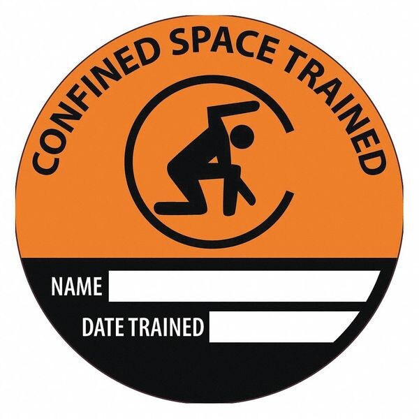 Confined Space Trained Name Date Trained Hard Hat Label, Pk25, Material: Reflective Vinyl Sheeting