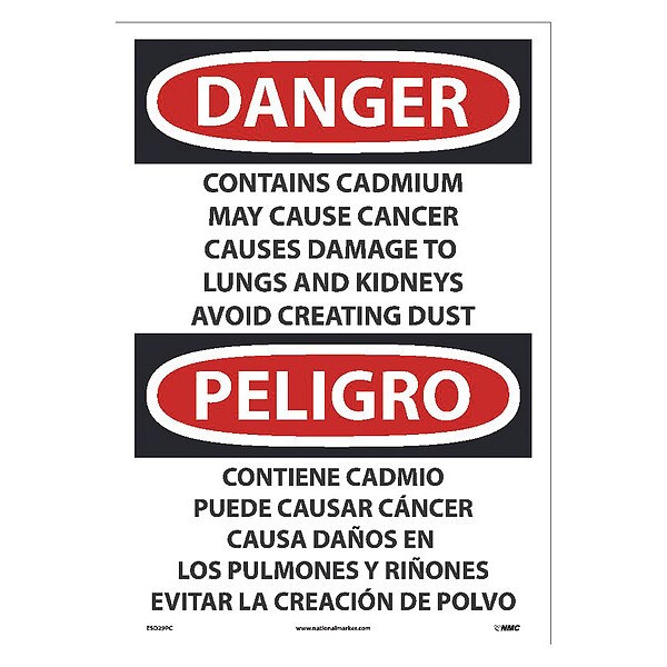 Contains Cadmium May Cause Cancer Sign - Bilingual, ESD29PC (Discontinued)
