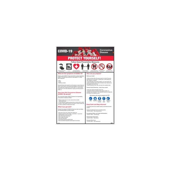 COVID-19 PROTECT YOURSELF POSTER, 18 X 24, SYNTHETIC PAPER ENCOURAGE EMPLOYEES, VISITIORS AND CUSTOMERS TO KEEP THEMSELVES CLEAN AND SAFE BY POSTING SIGNS AND POSTERS, SOCIAL DISTANCING PRODUCTS ETC. THESE PRODUCTS REMIND PEOPLE TO WASH THEIR HANDS, WHAT ILLNESS SIGNS TO LOOK FOR, HOW MUCH SOCIAL DISTANCE TO MAINTAIN.