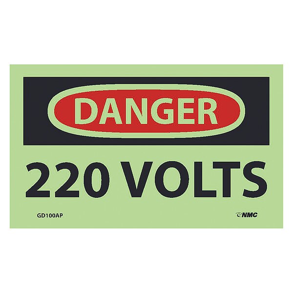 Danger 220 Volts Label, Pk5, GD100AP