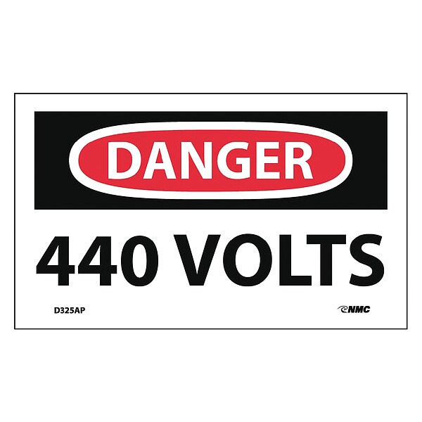 Danger 440 Volts Label,PK5, Package Quantity 5