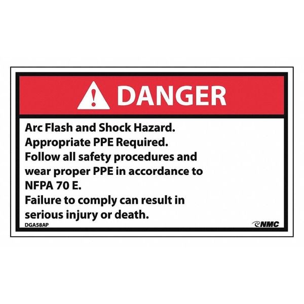 Danger Arc Flash And Shock Hazard Label, Pk5, DGA58AP