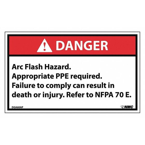 Danger Arc Flash And Shock Hazard Label, Pk5, DGA60AP