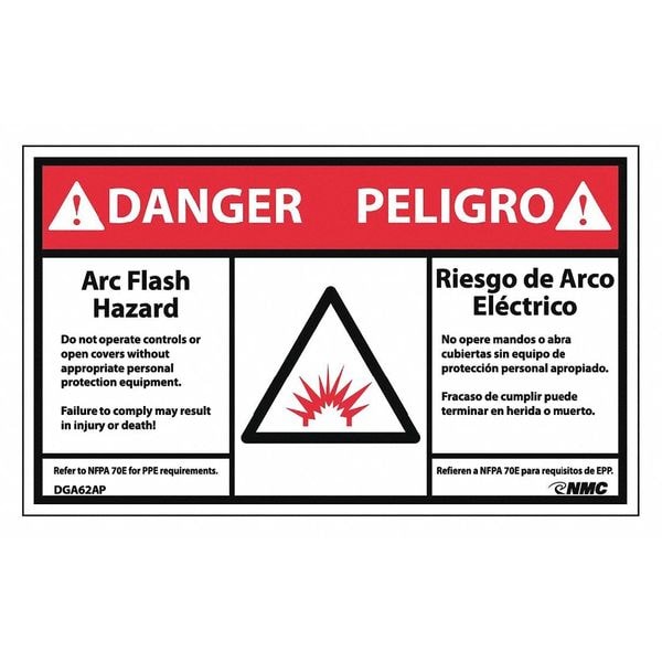 Danger Arc Flash And Shock Hazard Label, Pk5, DGA62AP
