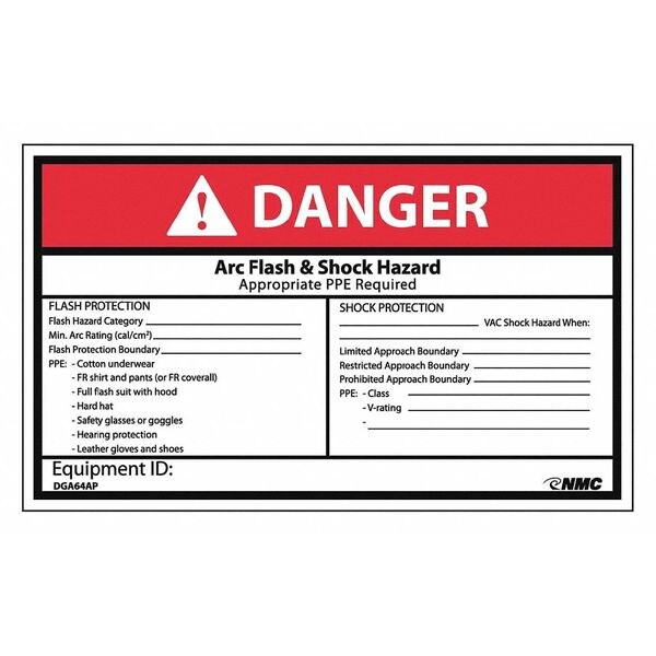 Danger Arc Flash And Shock Hazard Label, Pk5, DGA64AP
