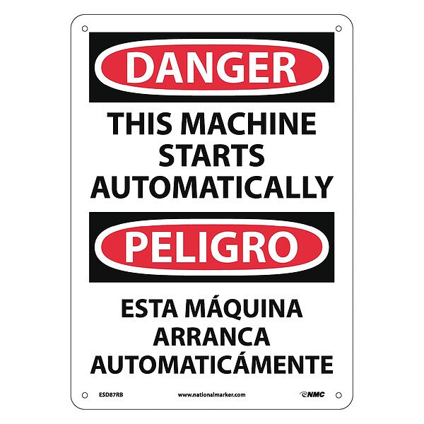 Danger Automatic Machine Start Sign, Bili, 14 in Height, 10 in Width, Rigid Plastic