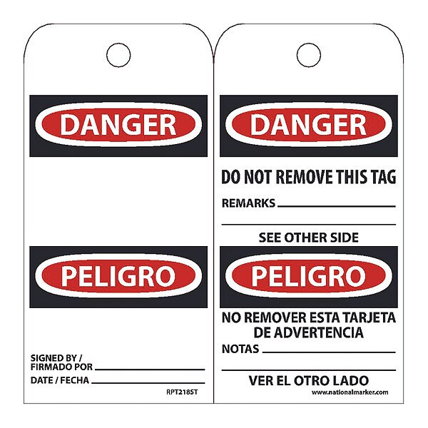 Danger Bilingual Tag,PK25, Package Quantity 25