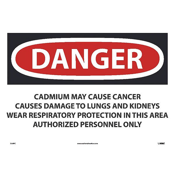 Danger Cadmium May Cause Cancer Causes Damage To Lungs and Kidneys Wear Respiratory Protection In This Area Authorized Personnel Only