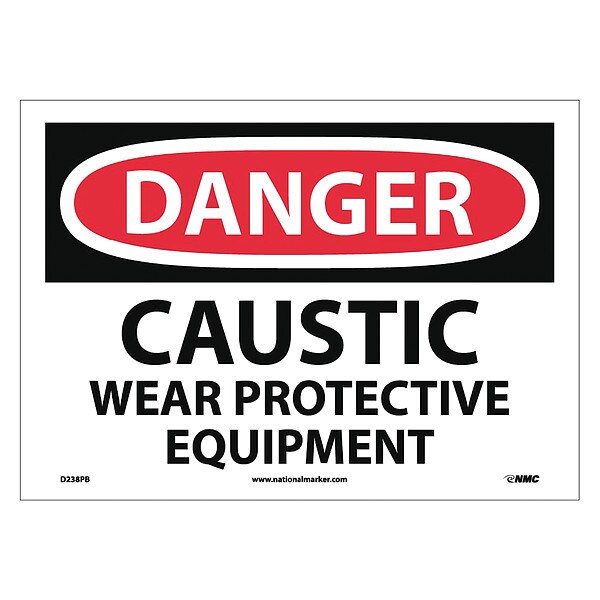 Danger Caustic Wear Protective Equipment, 10 in Height, Vinyl, Rectangle, English