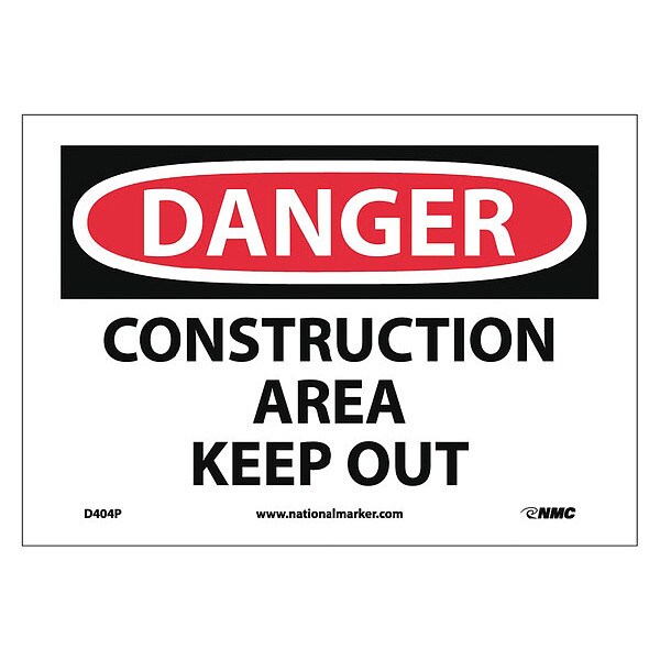 Danger Construction Area Keep Out Sign, 7 in Height, 10 in Width, Pressure Sensitive Vinyl