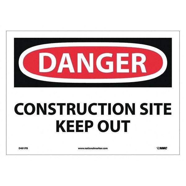 Danger Construction Site Keep Out Sign, 10 in Height, Vinyl, Rectangle, English
