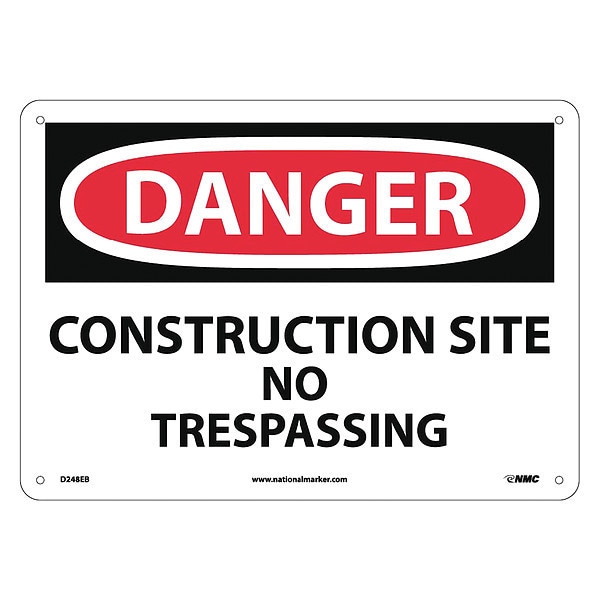 Danger Construction Site No Trespassing, 10 in Height, 14 in Width, Fiberglass (Discontinued)