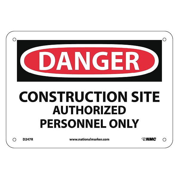 Danger Construction Site Sign, 7 in Height, 10 in Width, Rigid Plastic