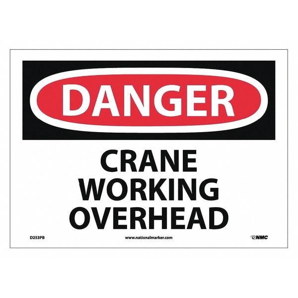 Danger Crane Working Overhead Sign, 10 in Height, 14 in Width, Pressure Sensitive Vinyl