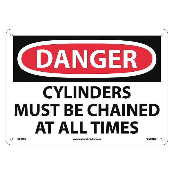 Nmc Danger Cylinders Must Be Chained At All Times Sign, D254RB D254RB