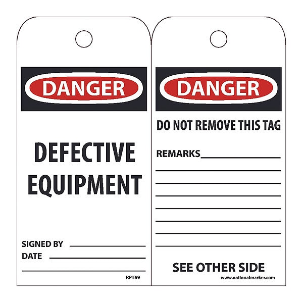 Danger Defective Equipment Tag,PK25, Package Quantity 25