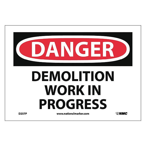 Danger Demolition Work In Progress Sign, 7 in Height, 10 in Width, Pressure Sensitive Vinyl