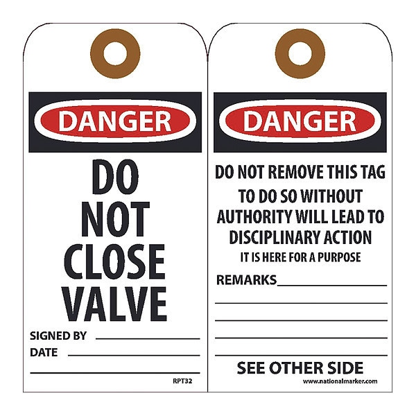 Danger Do Not Close Valve Tag,PK25, Package Quantity 25