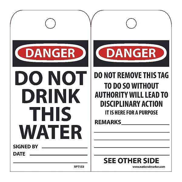 Danger Do Not Drink This Water Tag,PK25, Package Quantity 25