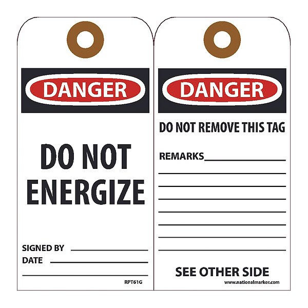 Danger Do Not Energize Tag,PK25, Package Quantity 25