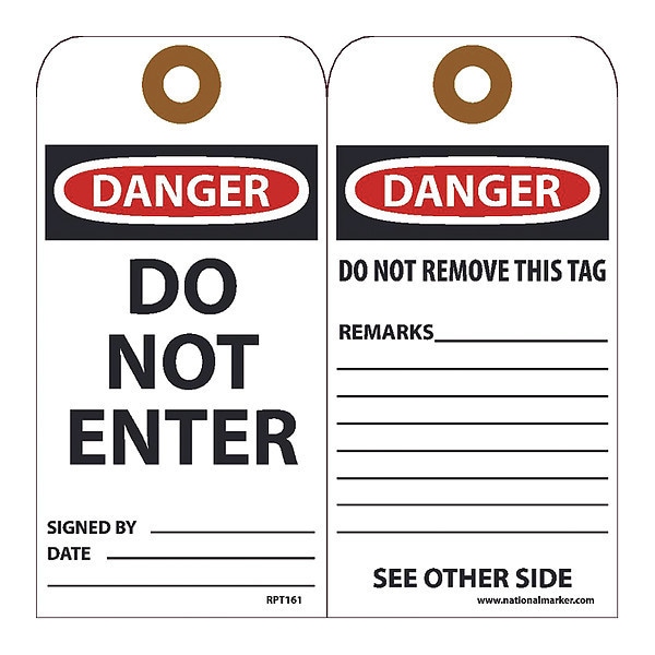 Danger Do Not Enter Tag,PK25, Package Quantity 25