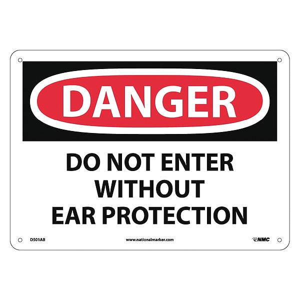 Danger Do Not Enter Without Ear Protecti, 10in Height, Aluminum, Rectangle