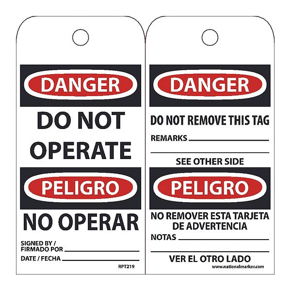 Danger Do Not Operate-Bilingual Tag,PK25, Package Quantity 25
