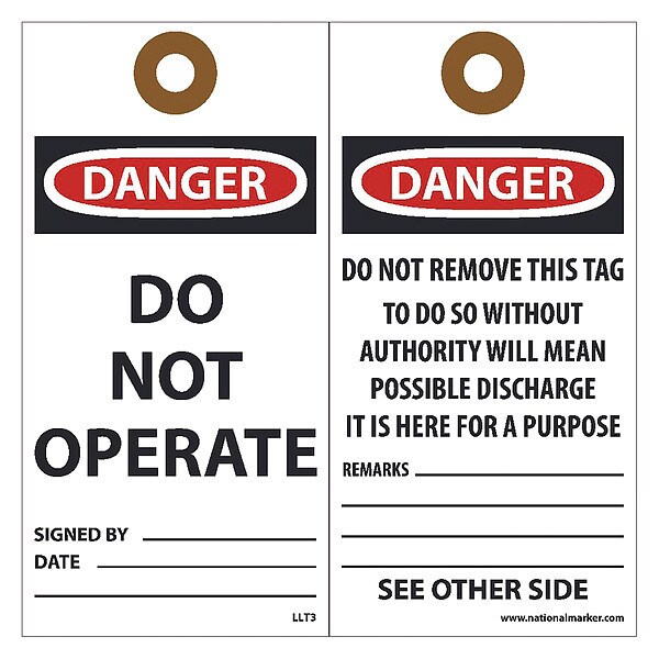 Danger Do Not Operate Tag,PK25, Package Quantity 25