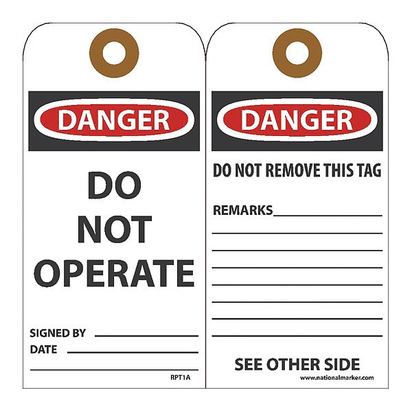 Danger Do Not Operate Tag,PK25, Package Quantity 25