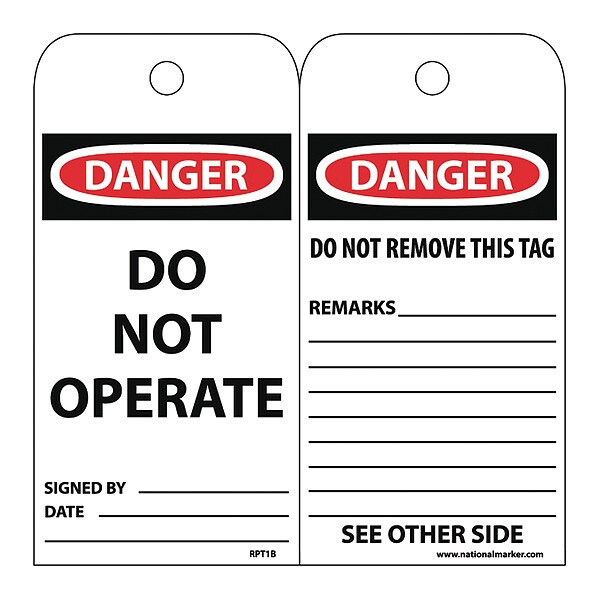 Danger Do Not Operate Tag,PK25, Package Quantity 25