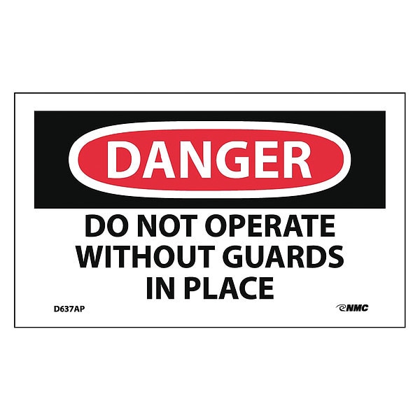 Danger Do Not Operate Without Guards In Place Label, Pk5
