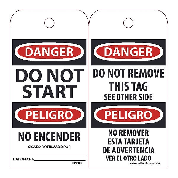 Danger Do Not Start Bilingual Tag,PK25, Package Quantity 25