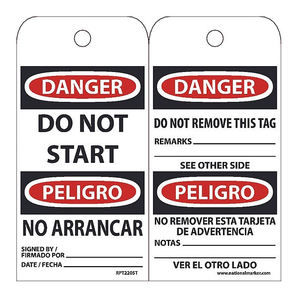 Danger Do Not Start Bilingual Tag,PK25, Package Quantity 25