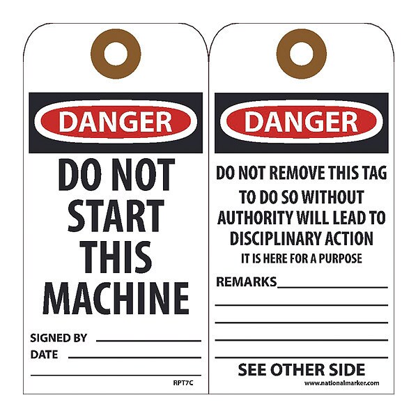 Danger Do Not Start Ths Machne Tag,PK25, Package Quantity 25
