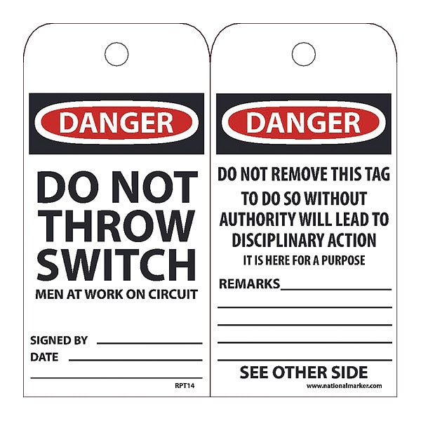 Dngr Do Not Thrw Swtch Men At Wrk O,PK25, Package Quantity 25