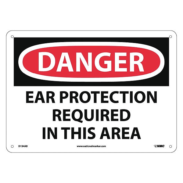 Danger Ear Protection Required In This A, 10 in Height, Aluminum, Rectangle, English