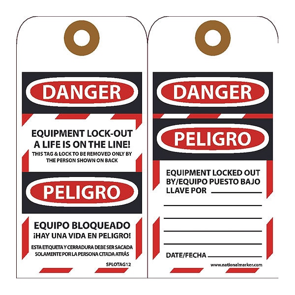 Danger Equipment Lock-Out A Life Is On The Line! Bilingual Tag, Pk10