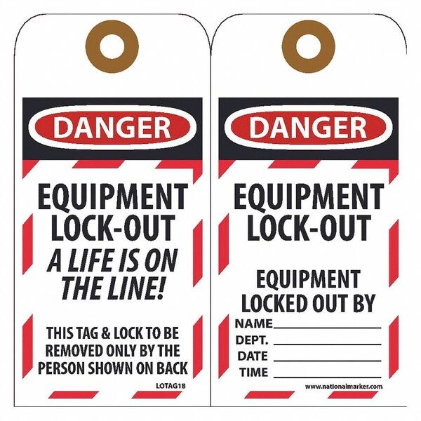 Danger Equipment Lock-Out A Life Is On The Line! Tag, Pk25