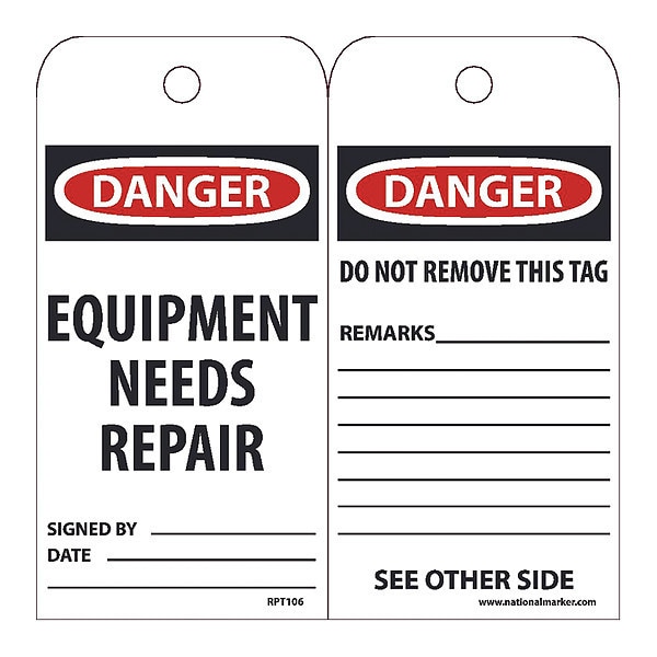 Danger Equipment Needs Repair Tag,PK25, Package Quantity 25