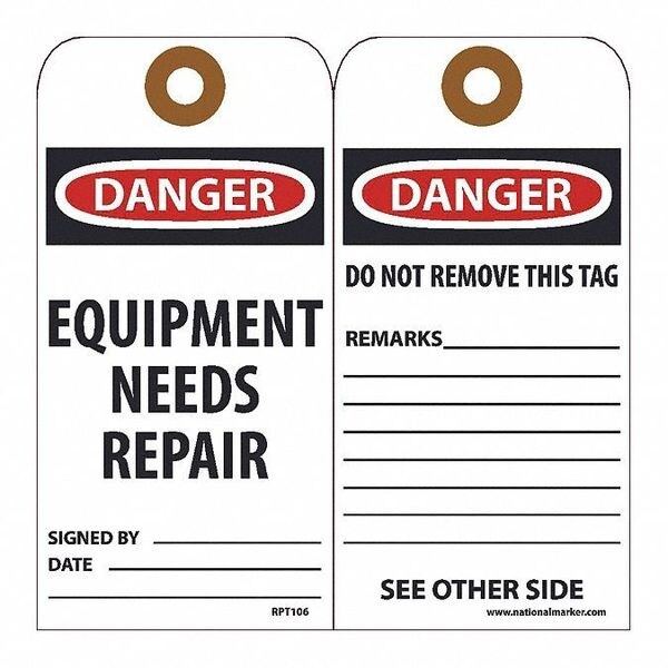 Danger Equipment Needs Repair Tag,PK25, Package Quantity 25