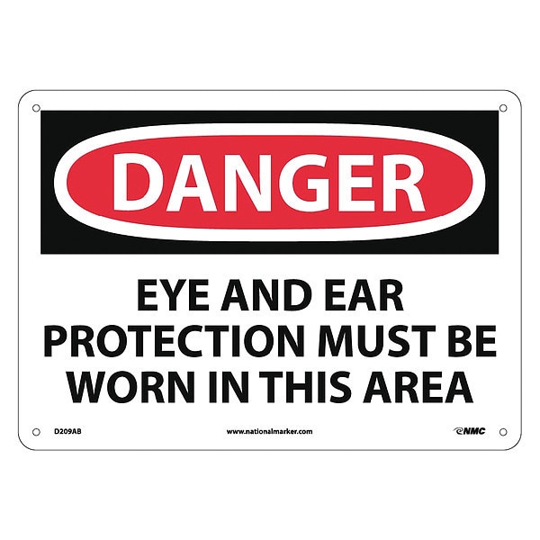 Danger Eye And Ear Protection Must Be Wo, 10 in Height, 14 in Width, Aluminum
