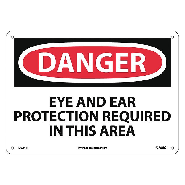 Danger Eye And Ear Protection Required I, 10 in Height, 14 in Width, Rigid Plastic